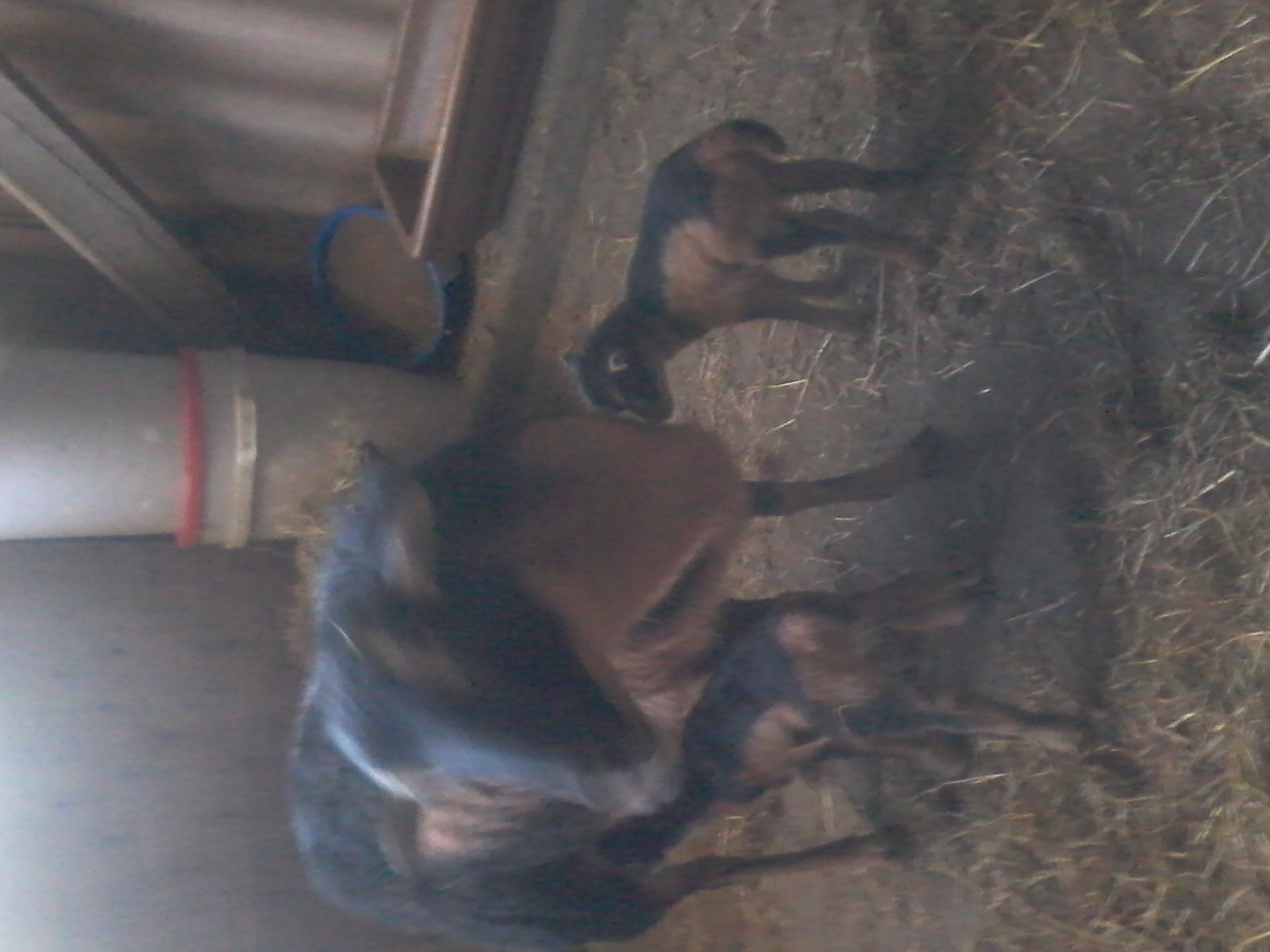 Hi Hannes, da liegst du richtig . Die beiden gemantelten Auen sind von einem schwarz marken Bock gedeckt worden, ein pechschwarz bock und schwarz gemantelte Zwillinge.